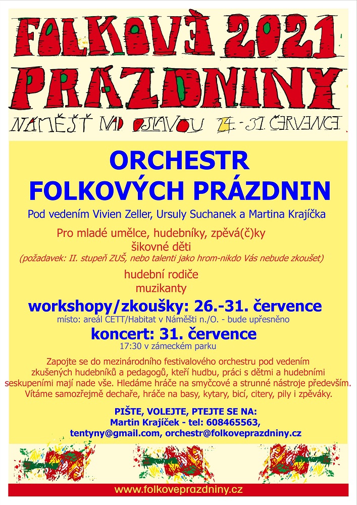 | 18.06.2021 Folkové prázdniny - Náměšť nad Oslavou 24. července – 31. července 2021 (Michal Schmidt) |