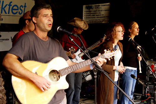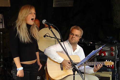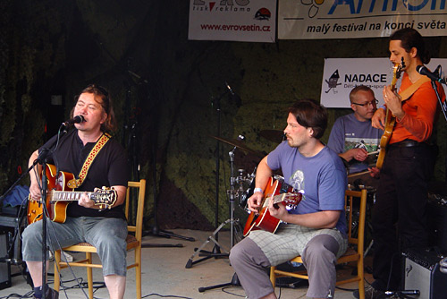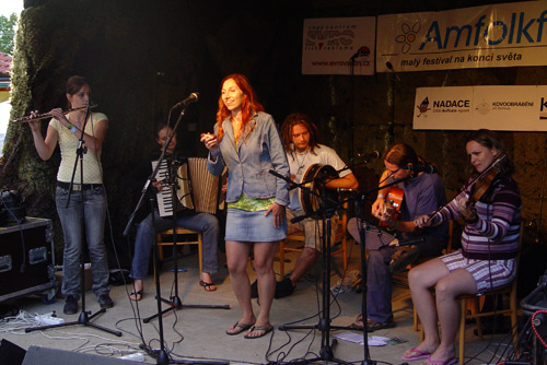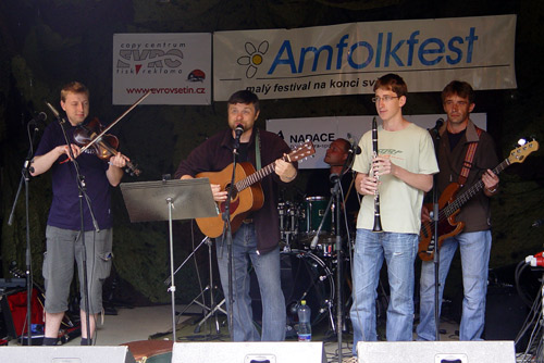 Festival na konci světa…co si tak pod tímto sloganem představit? Silnici přecházející v prašnou polňačku mizící kdesi v kopcích a lesích Beskyd. Přesně takovouto lokalitu představuje festival Amfolkfest, který se uskutečnil v sobotu 25.července 2009. V čerstvě zrekonstruovaném areálu a budově místní školy, kde v pátek ještě pracovali dělníci, pod taktovkou matky vsetínského folku Endy v sobotu krátce po desáté hodině odstartoval již 14. ročník tohoto festivalu. Po nočním dešti se lehce vyjasnilo a tak mohl ostravský Hrnek uvítat první přicházející návštěvníky. Roli Žalmana, zde jako první, na sebe obětavě vzala Lucie Redlová, která dešťový štafetový kolík předala vsetínskému Vrkoči. Ten však štafetu přerušil a duo samostatných písničkářů hrajících spolu Milan Sova – Jakub Slamák již vystoupili za sucha. V tuto chvíli bylo již hlediště velmi příjemně zaplněné a na podiu se dále střídali: Čadi, Zhasni, nebo účastník všech předchozích ročníků, a dle mého soukromého názoru a pocitu nejslabší účastník festivalu, slovenský Jasoň. Tamaral Petra Sedláčka jsem slyšel naposled ještě samostatně s Inkou Tognerovou a rozšíření na současnou sestavu hodnotím jednoznačně jako pozitivní. Martinu Trchovou s Karolínou Skalníkovou nechtěli diváci pustit z pódia. Spojkou k dalšímu vystupujícímu byla již zmíněná Karolína Skalníková a tak na podium dorazila pražská Sekvoj. Takřka domácí Žamboši s Jurou Nedavaškou vyvrátili tvrzení, že doma není nikdo prorokem a publikum bylo ve varu. Na skladbu Plísnička přišel Žambochy podpořit Kuba Slamák se svým simultánním překladem do ostravštiny. Velmi složitou situaci tak mělo Hluboké nedorozumění, ale koncerty a nočními sejšny otrkaná partička to se ctí ustála. Ani příjezd na poslední chvíli košickým Irish Rose nezabránil aby roztančili přítomné diváky. Držitelé Krtka z letošní Zahrady tak potvrdili oprávněnost tohoto ocenění. Přicházející soumrak uvítal trio Šantré doplněné perkusistou Petrem Kamišem. Další z několika přeháněk přitáhla diváky až k podiu, že v zadních řadách nebylo vůbec nic vidět. Bezprostřední kontakt jak v malém klubu. Slávek Janoušek společně s Lubošem Vondrákem byli příjemnou třešničkou na dortu. Absolutní závěr patřil country bálu a skupinám Gympleři a Karel Zich Revival band.