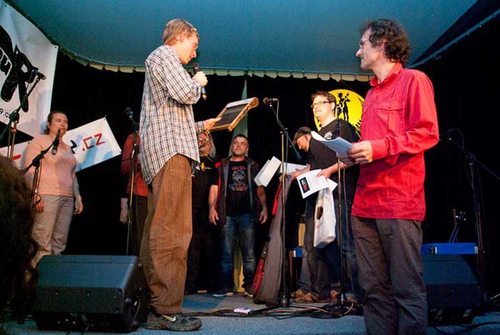 Můžete to vědět už ve čtvrtek 2. června 2011! Večer toho dne bude již poosmé rozhodnuto o tom, kdo zvítězí v písničkové soutěži amatérských folkových a hudebně příbuzných interpretů Notování! Vítěze určují svým hlasováním pro finalisty, kteří se jim zalíbí, diváci a Rada Notování (RN). V průběhu předchozích sedmi ročníků se podvakrát mínění těchto dvou „rozhodčích“ rozešlo. Proto má Notování již devět vítězů! Kdo se stane desátým vítězem Notování? ![]() Finále 2010 - vítěz VI. ročníku Honza Donald Jícha předává putovní cenu Fajnbeatu foto: Rejka Balcarová Možnost stát se vítězem VIII. ročníku mají, po šesti základních a třech semifinálových kolech, (v abecedním pořadí) tito finalisté: • skupina Alison z Kraslic, která se strhujícím nadšením hraje po svém písničky a instrumentálky z pokladnice keltské muziky a nosí k tomu příslušné rázovité oblečení - Tonda Vyšehradský klanové kalhoty, ostatní klanové suknice (kilty). • mladičké jablonecké dívčí trio KaBáJa, které hraje převážně vlastní autorský repertoár s energií takovou, že by se mohlo jmenovat Tři Temelíny (po četných úspěších v „dětských“ soutěžích se děvčata poprvé zúčastňují finále „dospělácké“ soutěže); • Půl dechu do měchu, hořovická folk-jazzová formace výborných muzikantů a vynikající zpěvačky a autorky Šárky Pexové (ještě před pár lety tato skupina zářila ve stejných soutěžích, jako dodnes KaBáJa a Věneband); • moderní bluegrass a příbuzné akustické hudební směry hrající kapela Twisted Timber z Prahy se zpívajícím kytaristou Mattem Whittenem z Chicaga a v angličtině textovaným repertoárem z autorské dílny svých členů; • skupina Věneband z Litomyšle, jejíž protagonistkou je sedmnáctiletá originální zpěvačka, houslistka, mandolinistka a autorka Jana Věnečková (po četných úspěších v „dětských“ soutěžích, se skupina poprvé zúčastňuje finále „dospělácké“ soutěže); • písničkář Marek Vojtěch, akordeonista z Prahy, po řádce let v zaniklé bulharské dechovce Gothart znovu na startovní čáře, tentokrát s originálními, vtipnými popěvky a kuplety - začátečník za zenitem dle vlastního skromného tvrzení. Hostem finálového večera bývá tradičně vítěz minulého ročníku a nejinak tomu bude i letos. V čase rozhodování o vítězi vystoupí skupina Fajnbeat, která v závěru programu předá vítězi VIII. ročníku putovní cenu, Harfu kněžny Libuše, která poslední rok putovala mezi jejími členy. Putovní cena a palma vítězství je jen pro vítěze. Všem finalistům budou ale rozděleny ceny další! RN je odmění upomínkovými keramikami z chráněných dílen OS Stéblo a poukazy na výběr zboží v prodejně Music City pořízenými díky grantu Nadace Život umělce. Věcnými cenami ze svého sortimentu hodnotu odměn pro finalisty výrazně navýší obchod hudebními nástroji a vybavením Music City, v jehož budově Notování probíhá… Všechny, kteří chtějí být u uvedených událostí osobně přítomni, srdečně zveme, aby zavítali 2. června 2011 do Ocelářské ulice č. 39 v Praze 9, do koncertního sálu Music Hall ve kterém přesně v 19.30 začíná finále VIII. ročníku Notování! Sdílet na... Kam dál? » Druhé semifinále Notování – říjen 2025 (Miloš Keller)» Notování minule (5. 4. 2018) a příště (3. 5. 2018) (Karel Vidimský - Cimbura)» Notování – reportáž z 3. a pozvánka na 4. kolo (Bublina a Belmondo)» Vyrovnané Notování s pádným koncem (Honza Dobiáš)» Výsledky 3. základního kola VIII. ročníku Notování (Rada Notování)