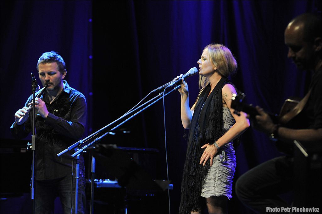 O Anně Marii Jopek (PL) řekla Eva Vrbková, představitelka Eržiky z Balady pro banditu, kterýmžto kusem se Gong o den dřív pro účely Colours of Ostrava otvíral, že její vystoupení je esence ženství. Naprosto souhlasím: blonďatá stále-ještě-sexbomba disponuje nádherným plným hlasem, který skvěle ovládá. Zpívá krásnou měkkou polštinou, do které si člověk může vysloveně lehnout, ale začala češtinou, kterou představila kapelu, čímž si získala diváky. Ostatně, přestože všechny materiály o ní psaly jako o jazzové hvězdě (byť s velmi širokým záběrem), na mnou zhlédnutém recitálu přinášeli jazz hlavně její doprovodní muzikanti, a to svým cítěním, nikoli použitými nástroji. Ty mohly být víceméně i folkové (akustická kytara, různé basy, bicí či perkuse, klavír, irské píšťaly), stejně jako celý, z lidové hudby vycházející repertoár.