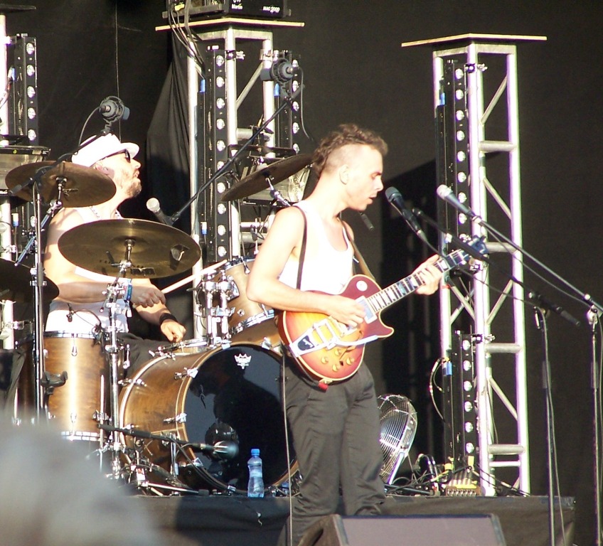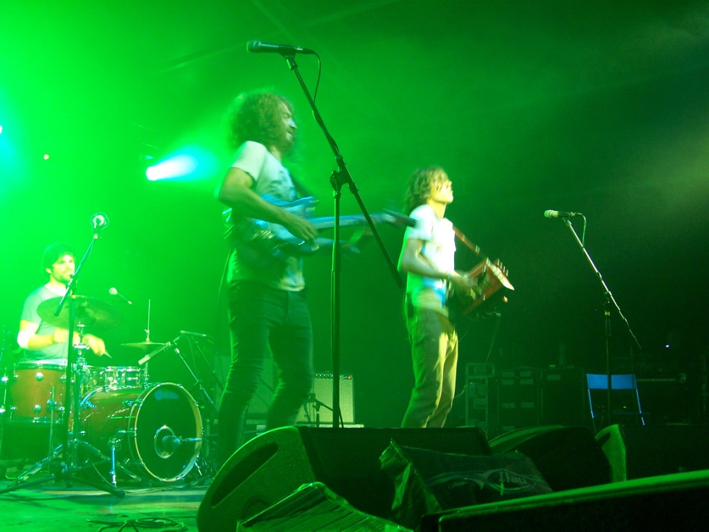 Asaf Avidan (Izrael) – písničkář z množiny nejuznávanějších světových folkrockerů, muž který umí posluchače rozdělit v názoru na svůj výjimečný hlas. Podle mého znějící, jak když se zkříží pozdní Dylan se svým skřehotavým, zraněným tónem, s někým jako třeba John Mellencamp, což mu umožní zpívat o oktávu a půl výš… Přes svůj původ hraje klasický anglosaský folkrock; zpestřujících blízkovýchodních „hadů“ jsem si v jeho aranžích všiml asi jednou nebo dvakrát. Doprovodnou kapelu tvořil baskytarista, bubeník a dvě klávesistky (jedna hrála i na perkuse.) Moc příjemně strávený podvečerní čas.