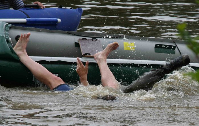 „Nekecej a pádluj!“ zaječel torpédoborec Magdalena. „Ber to rovně!“ Kejda mrsknul pádlo do lodi a připravil se ke skoku přes palubu. „Sedni!“ zavrčela Magdalena. „Sedni a drž klapačku! A vopovaž se skočit!“ Kejda se ještě stačil ohlédnout; vzápětí byl uzemněn a nasměrován za pádlem. Titanik se vcelku ladně přehoupl přes hranu jezu, na chvilku zaváhal, jako by si to ještě na poslední chvíli chtěl rozmyslet, a pak se čumákem svezl pod jez. Magdalena hrábla vlevo, přehmátla, hrábla vpravo, pod kýlem se mihl obrovský zpěněný válec. Kejda zavřeštěl a zaťal pracky do bortů. Titanik proletěl vodní tříští, nechal se vynést vlnou, mělce se propadl, zhoupl a bravurně přistál kousek pod jezem. Kejda začal v zápětí velice nedůstojně zvracet. „Tak co?“ povídá žoviálně Magdalena. Zelený háček se po ní vyčítavě ohlédl. „Tak nic,“ zaskřehotal. „Tak vylez,“ doporučil mu kormidelník a šel se podívat, jak jde ostatním přenášení. * * * Abychom to neprotahovali, měli bychom si hned v úvodu představit aktéry této nevšední kratochvíle; jednak proto, že jsou to hlavní hrdinové, jednak proto, že to stojí za to. Kejda byl hodný, odvážný a sebevědomý mladý muž, pokud stál oběma nohama na pevné zemi. Když došlo na vodu, měnil se v suchozemskou krysu s žebříčkovou nervovou soustavou, kterou ještě k tomu tahal za sebou v kýblu. Poslední dobou stále častěji uvažoval o tom, proč když dobrotivý trampský pánbůh přiděloval lidem kamarády, obklopil ho smečkou šílenců, pro které bylo léto bez lodi hříchem a Kejda pro ně sloužil jako názorný příklad, jak hluboko může člověk klesnout, když se neskamarádí s živlem. Ale protože, jak už bylo řečeno, to byl jinak hodný a odvážný mladý muž, pochopil, že je zbytečné těm bláznům odporovat a rozhodl se léto prostě nějak přetrpět. Titanik byla fialová příšera a na první pohled bylo jasné, že během letošní sezóny nebude mít co do vzhledu na řece konkurenci. Na druhý pohled se zdálo, že po pár metrech skončí stejně jako jeho o něco málo větší a starší jmenovec. Titanik vyrobil zjevně ve slabé chvilce Kejdův děd, jinak nadšený ctitel pramic. Loď proto vypadala jako sportovní vor; byla podobně široká, velmi stabilní a nesporně měla svůj osobitý půvab, který však zatím nikdo nedokázal najít. Měla dokonce i jistý šarm, ale ni kdo nevěděl kde. Řeka byla prostě řeka. Byla tu od nepaměti, valila se klikatými záhyby vpřed, nad ní svítilo slunce, kolem ležely lesy a louky, voněla létem, opalovacími krémy, vodou, repelentem a potem. Momentálně na ní a kolem ní kromě milionů komárů a jiné veselé havěti, která byla jednoznačně v převaze, žilo i pár desítek vodáků. S ohledem na ty komáry byly chvíle, kdy je řeka tiše obdivovala. Kejdova kormidelníka si úmyslně nechávám na konec, protože i do děje vstoupil jako poslední. Pravda o Magdaleně byla vcelku prostá. Ostatní posádky kolem našeho hrdiny jely v tradičním složení: na zádi mužný, zarostlý a rozhodný kormidelník, na přídi krásný, nezarostlý a pištící háček. Kejda se dopustil osudné chyby v neděli 11. června v půl páté odpoledne, kdy se definitivně rozešel s jistou vážnou známostí. Rozcházel se s ní už od ledna, a tak z toho měl prasečí radost. Smích ho přešel téhož dne ve čtvrt na sedm, když mu došlo, že je nejen bez slečny, ale taky bez háčka, a Titanik je tudíž bez pohonu. K jeho cti - samozřejmě Kejdově, ne Titanikově - je třeba říci, že nezahálel a během následujících týdnů sháněl háčka úplně všude, inzerát v krajském deníku nevyjímaje. Háky lovil i ve vlaku cestou na řeku, na břehu, když čekali na lodě, v hospodě, na poště, ve smíšeném zboží i na nádraží. Lovil, ale neulovil. Jednu slečnu dostal sice až k řece, ale když spatřila Titanik, dostala škytavku a s hrůzou utekla. Kejda se nasupil, skočil do lodi, popadl pádlo a opsal několik ladných kružnic. Vytáhli ho z rákosí a ukázali mu, jak se ten nesmysl ovládá. Když ho takhle vytahovali pošesté, už mu to docela šlo a do večera se to skoro naučil. Následující den večer byli o deset kilometrů a šest milionů komárů dál. Rozbíhala se první vzpoura háků a Kejda se radoval, že se ho to netýká. Začal razit odvážné heslo „Správný háček sám sobě kormidelníkem,“ za což ho ten večer seřvali háci a následující den i kormidelníci, kterým se dámy začaly nemístně plést do řemesla. Nakonec Kejdovi všichni společně doporučili, aby si šel laskavě hledat vlastního háčka a je nechal radši na pokoji. Kejda se odplížil na cestu do hospody, která se mu stala osudnou. Zdálky zlomyslně šplouchala řeka a Kejda potkal své slunce. Magdalena měla červené tričko s velkými černými puntíky, takže částečně opravdu připomínala sluníčko sedmitečné. V jedné ruce třímala omlácené pádlo, u opálených nohou jí ležel miniaturní báglík a v peněžence pět kaček šedesát halířů. Kejda ji zaregistroval v okamžiku, kdy podnapilému traktoristovi místního družstva už posedmé vysvětlovala, že když ji doveze do Hradce, dá mu pět korun na dřevo hned a zbytek po příjezdu na místo zatáhnou známí. Traktorista se smál a hledal, kde má ta hezká puntíkovaná slečna žihadlo. Slunce vzdychlo a pustilo se do vysvětlování poosmé. Kejda se rozhodl vzít osud do vlastních rukou. Do tábora se vrátil až po půlnoci; sice s monoklem od žárlivého traktoristy, který už považoval sluníčko sedmitečné za svůj soukromý majetek, ale také s Magdalenou. Nějak se mu podařilo vysvětlit jí, že jet stopem po řece je daleko zábavnější, i když v Hradci nebude za tři hodiny, ale za tři d