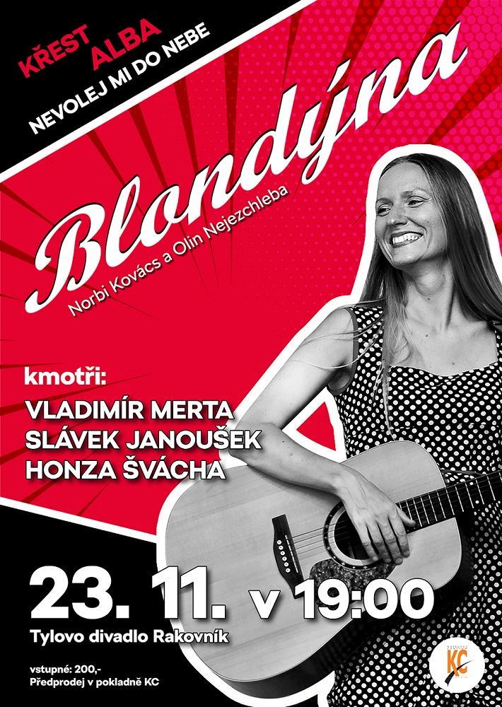Blondýna zve na křest své první oficiální desky Nevolej mi do nebe!. Konat se bude 23. listopadu v Tylově divadle v Rakovníku. Podpořit a pokřtít album přijdou Norbi Kovács, Olin Nejezchleba, Slávek Janoušek, Honza Švácha a Vladimír Merta.