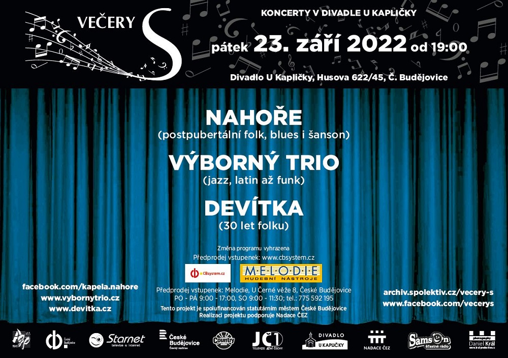 | 31.08.2022 Večery S: Nahoře, Výborný trio a Devítka (Jarda Hnízdil) |