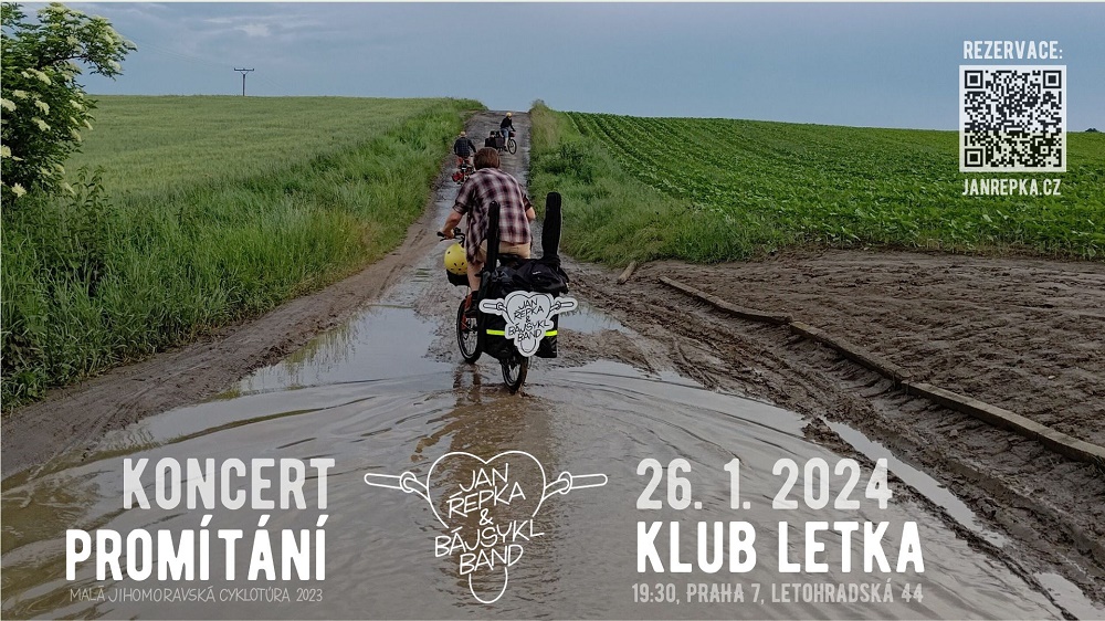 V pátek 26. ledna 2024 v 19:30 Bájsykl Band v pražském klubu Letka. Písně o šlapacích kolech, udržitelném rozvoji a neudržitelné touze. Hudební zážitek pro poklidné poutníky i pro lovce vrcholových prémií.