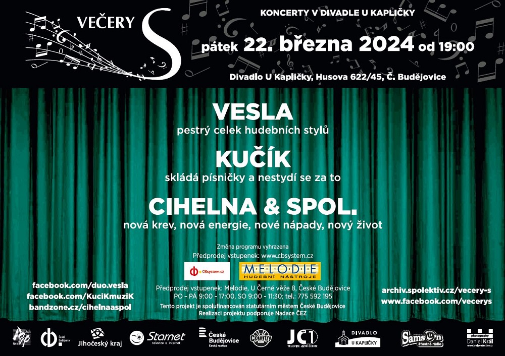 Na Portě v Českých Budějovicích jsem v loňském roce v sále Českého Rozhlasu objevil hned dva z protagonistů již třetího koncertu Večerů S.. roku 2024. Ještě jsem netušil, že budu v roce 2024 patronem, ale jak Vesla, tak Kučík zaujali nejen mne, ale i porotu a taky kamaráda a bývalého moderátora Eldorádia Vojtu Víta.