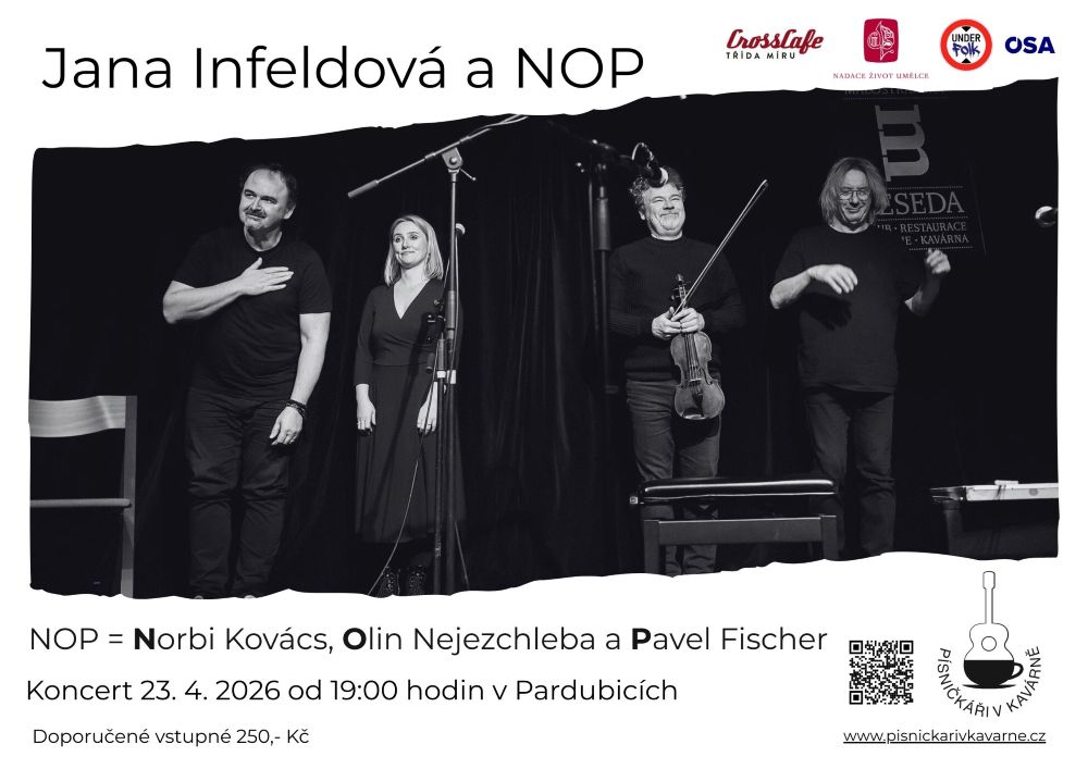 Přijměte pozvání na čtvrtek 23. dubna na koncert Jany Infeldové a NOP od 19:30h v pardubické kavárně CrossCafe na Třídě Míru.