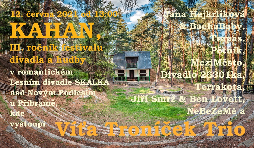 Romantické Lesní divadélko Skalka v brdských hvozdech nad obcí Nové Podlesí u Příbramě otevře 12. června 2021 před 13. hodinou svoji scénu, hlediště i kiosek s občerstvením třetímu ročníku hudebního a divadelního festivalu Kahan. V nabitém programu mladého festivalu lze shlédnout a vyslechnout pohodový mix místních i přespolních muzikantů a vtipný soubor mladých ochotníků...
