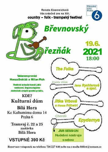 Po vynucené pauze v loňském roce se na pražskou festivalovou scénu opět vrací Břevnovský Březňák. Jeho třinácté pokračování se odehraje v sobotu 19. června 2021 od 18 hodin ve venkovních prostorách Kulturního domu Bílá Hora.