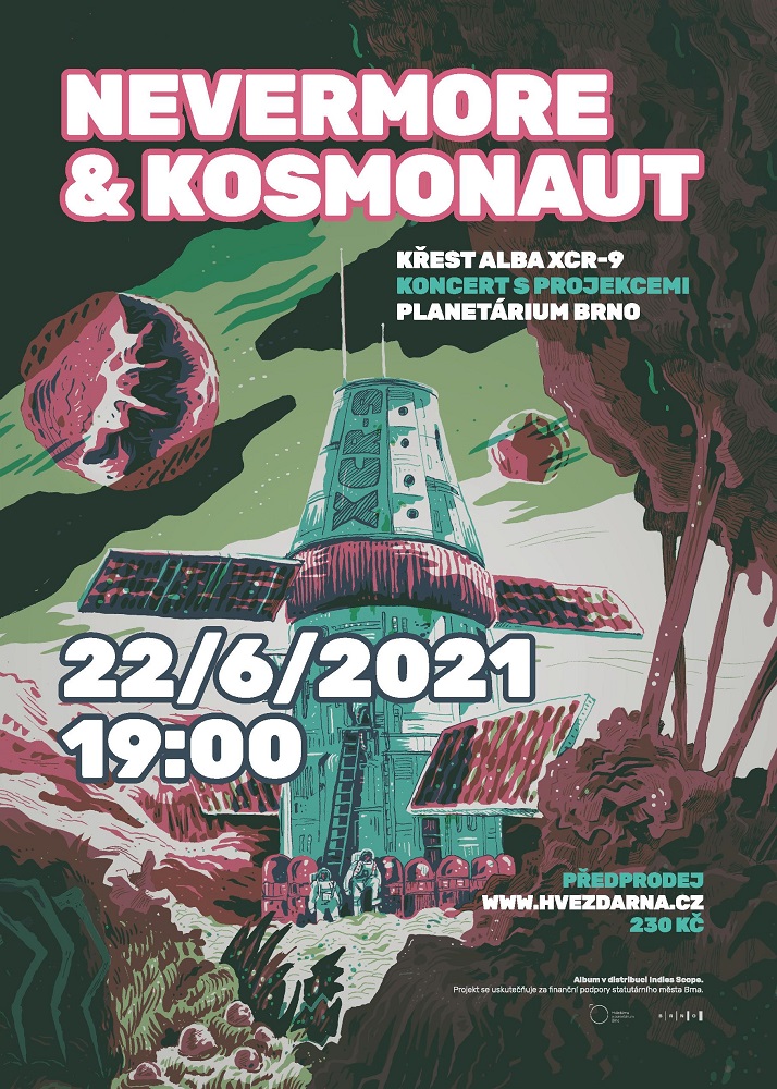 Brněnská Hvězdárna je jedno z míst kam se opět po dlouhé době vrací kulturní život. V úterý 22. června se zde uskuteční koncert skupiny Nevermore & Kosmonaut, který doprovodí unikátní projekce. Kapela zde pokřtí své poslední album XCR-9 Písně do rakety. Diváci si mohou užít jedinečné spojení živé hudby s projekcemi na celou kupoli velkého digitária, které je zavedou mezi hvězdy a vzdálená souhvězdí. Nevšední zážitek bude umocněn tématickými písněmi, které byly na desku natočeny před fiktivní cestou skupiny do vzdálených míst nejbližšího Vesmíru. Album s sebou nese zprávu o lidech a jejich životech, imaginaci, odhodlání i pochyby před dalekou misí s určitým cílem, ale bez pravděpodobného návratu.