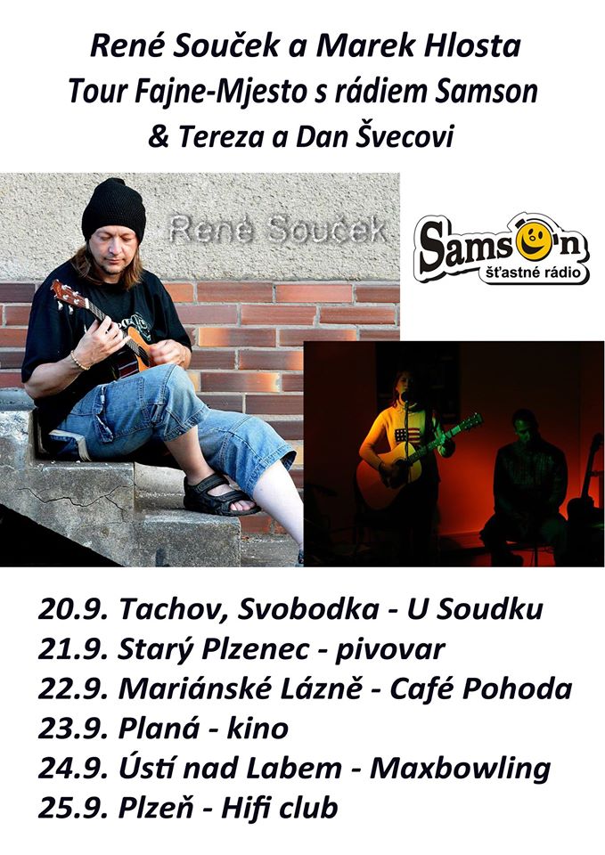 Na Západočeské turné vyráží bard z Fajného Mjesta, tedy z Frýdku-Místku, René Souček. Není to jeho první návštěva kraje "od Plzně na západ", ti, kteří navštívili jeden z jeho minulých koncertů si jistě pamatují sympatického muže s kytarou a ukulelem, jak střídá písně vážné i méně vážné a jeho příslovečnou a nezaměnitelnou dikci. Pozorovatel života, instrumentálně zdatný muzikant a vypravěč se vrací na místo činu. Na jeho Radio Samson Tour ho navíc doprovodí i spříznění Dan a Tereza Švecovi: