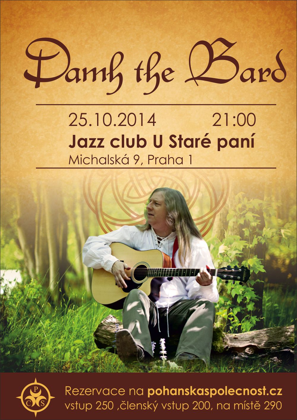 Přijďte si poslechnout krásu pohanské hudby a prožít tak neopakovatelný zážitek. Damh the Bard je jednou z nejvýznamnějších postav pohanské folkové hudby a zároveň druid největšího britského druidského řádu OBOD. Hudba je pro Damha jedním z vyjádření jeho druidské i lidové tradice, duchovní cestou a způsobem, jak sdílet s ostatními a prožívat cestu bardů. V jeho písních a příbězích ožívají mýty, prastaré příběhy a rituály, duchové kopců i velmi starých stromů. V jeho textech se můžeme setkat s Bohy zejména z keltského, ale i z řeckého pantheonu. Příběhy, které vypráví jeho hlas a kytara, nabízejí nejen pobavení, ale také inspiraci, náměty k přemýšlení a dotyky starého, zapomenutého světa. Kdy: 25.10.2014 Čas: 21:00 Kde: Jazz club U staré paní, Michalská 9, Praha 1 Cena: předprodej 250 Kč, členové Č.P.S. 200 Kč, na místě 290 Kč Pro jakékoliv dotazy nás neváhejte kontaktovat na Tato emailová adresa je chráněna před spamboty, abyste ji viděli, povolte JavaScript http://www.paganmusic.co.uk http://www.pohanskaspolecnost.cz Jsou srdečně vítáni všichni pohané i nepohané. Těšíme se na vás! Sdílet na... Kam dál? » Písničkář Damh the Bard vystoupí v Praze (Česká pohanská společnost)» Koncert Damh the Barda je opět tady! (Tereza Hriníková)