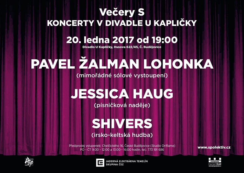 Duchovním otcem hudební série je Jaroslav Hnízdil, kapelník jihočeské art folkové skupiny Spolektiv. „Jedním z hlavních záměrů je zvát nové hudební talenty, skupiny a písničkáře z jižních Čech, a vytvořit tak prostor pro jejich koncerty na budějovické půdě v Divadle U Kapličky. Věříme, že se tak dostanou do povědomí posluchačů i širší veřejnosti. Večery S jsme připravili ale i pro účinkující, kteří již mají něco za sebou,“ řekl Jaroslav Hnízdil. Termíny jednotlivých koncertů budou vždy třetí pátek v měsíci. Hrát se bude od ledna do dubna a od září do prosince. Patronem prvního ročníku je Pavel Žalman Lohonka, který také celou hudební sérii zahájí v pátek 20. ledna 2017 svým sólovým vystoupením. Kromě něj vystoupí na zahajovacím večeru písničkářka Jessica Haug, za poslední roky největší jihočeský objev Dětské Porty, a volyňská kapela Shivers, která mísí folk, rock, keltské názvuky, Irsko i world music a která získala i prestižní cenu Krtek na festivalu Zahrada.