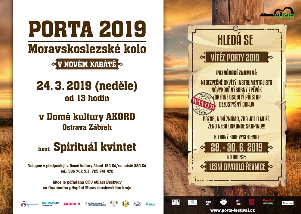 Srdečně vás zvu na Moravskoslezské oblastní kolo festivalu Porta 2019. Akce se koná v neděli 24. března 2019 od 13:00 hodin v DK Akord v Ostravě-Zábřehu.
