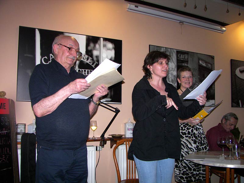 Poté se poprvé ujal slova pan Josef Somr. Josefu Somrovi bude příští rok neuvěřitelných 80 let. Rodák z Vracova, který si dodnes rád zazpívá krásné slovácké písně, byl poprvé diváky zaznamenán v Oscarových Ostře sledovaných vlacích. Nevím, zda milovníci tohoto filmu vědí, že pan Somr měl být původně železničářem. Léta byl protagonistou Činoherního klubu a Národního divadla. Jeho hlas zní dodnes z rozhlasových nahrávek a můj tříletý vnuk miluje Bubáky a hastrmany v podání pana Somra. Na panu Somrovi si kromě hereckého umění cením jeho bezprostřednosti a nehvězdného chování. Bylo těžké vybrat z třináctiset povídek Jaroslava Haška ty „pravé“. Spojovací text tvořily především dotazy a odpovědi, vybrané z delšího textu. Po každé odpovědi následoval smích publika. Poté Milan Dvořák zazpíval starou dělnickou píseň o mašinách beroucích dělníkům práci… mašiny, všude mašiny. V první polovině devatenáctého století to byla jistě nadsázka, nicméně kartounkáři v Portheimově továrně na Smíchově, pracující třináct hodin denně, se obrátili proti těm novým mašinám, stejně jako jinde na světě, když začínala průmyslová revoluce. Povídka Tragédie obchodníkova působila jako by byla napsána dnes. Popisovala s typickou Haškovou drastickou nadsázkou boj obchodníka s berním úřadem. V další písni se Věrka Slunéčková svěřovala, že je holka ještě mladá, ale muže má starého. Milovníci Karla Poláčka jistě postřehli, že sloka „vařila mu čekuládu a masíčko vod vola a ten šotek pihovatej byl furt jako mrtvola“ zpívaly služky v knize Muži v ofsajdu. Milan Dvořák vzpomněl v další písni kata Pippergra. Švejk vzpomněl na kata Wohlschlägera, který věšel za dvě zlatky. Kde jsou časy, kdy byla známa jména katů? Povídka Zpověď velezrádcova aneb tajemství bašty na Petříně je výrazem Haškova postoje k armádě, zejména k její blbosti tvořící základ disciplíny. Za socialismu šly devatenáctileté děti v uniformě do Sabinova jen za to, že prozradily, že slouží u raket. Zlaté Rakousko! Píseň Bylo to vonehdá v neděli plasticky popisuje akci velitele mravnostní policie v Praze komisaře Drašnera, jemuž Švejk odpověděl na výzvu, aby se legitimoval, dotazem, zda k tomu má povolení od policejního ředitelství. Rád bych věděl, zda píseň o hrdinné ožralé Mařeně, která se Drašnera nebála, pan komisař někdy slyšel? V dalších odpovědích sdělil Hašek ústy pana Somra, že při půjčování peněz se nesmí šetřit… už tenkrát. Věrka Slunéčková v další písni sdělila, že hrdina písně byl tři roky na vandru a dva roky v chládku. V době Haškova mládí fungovaly mimo jiné dvě zcela moderní věznice - Pankrác a Bory se spoustou příhod. Námořnická povídka líčila odvážný čin kapitána na Vltavě, který dojel dál než do Chuchle a objevil Zbraslav. Nevím, na kolik se uvedenou povídkou inspirovali mí oblíbení Jaroslav Žák a Vlastimil Rada ve Vzpouře na lodi Primátor Dittrich, ale oba texty mají hodně společného a některým divákům opakovaně tekly slzy smíchu. Před pauzou zazpíval Milan Dvořák trampírnu Čtrnáct starejch lotrasů, která se mi obzvlášť líbila v podání Jardy Štercla. Po pauze zněla píseň s refrénem „S tím velkým bim bam glória, oracionibus“. Její původ neznám, ale Milan, Věra a Alena volili její soft verzi, jako ostatně i u jiných písní. Píseň o zapíchnuté Anežce Bémové patří do zlatého fondu kriminálních hororů, obsahujících jména oběti, pachatele, popis trestného činu a samozřejmě poučení s dovětkem „Plakali jsou rodičové“. Po písních se opět ozýval smích při dotazech a odpovědích. Milan Dvořák poté zazpíval mně dosud neznámou píseň z Podskalí, kdysi legendární části Prahy. Věra Slunéčková pak přednesla, podle mého soudu, jednu z nejlepších Haškových povídek Zrádce národa v Chotěboři. Jestli Hašek něco nesnášel, bylo to předstírání v životě a zejména v politice. V žádném případě nepohrdal láskou k vlasti, ale byly mu směšné fangličky, silné řeči s cílem oslavit vlast v hospodě. A tak Jan Pavlíček, který neudržel svěrače a znectil dub, pod nímž údajně odpočíval Žižka, se stal malým českým Ahasverem. V devatenáctém století se i v Praze pohybovali anarchisté a Hašek byl po určitou dobu redaktorem anarchistického časopisu Komuna. Na rozdíl od jiných zemí, zejména Ruska, v Rakousku pumové atentáty s krutými následky snad ani neexistovaly. Píseň U direkce praskla puma s refrénem „Vrz, vrz, to se nám to mašíruje“ je patrně reflexí na ojedinělou událost. Píseň je pochodová, jak má u takových písní být. Poslední a nejdelší povídka se jmenovala Obecní volby. Když jsem tuhle povídku četl v době, kdy volby dopadly vždy na 99,9 %, netušil jsem, co nás po roce 1989 čeká. Charakteristika jednotlivých stran, obsah pamfletů na protikandidáty až k závěrečnému výkřiku, že starosta žere kočky, ta by obstála i dnes. Poslední písní byla Zima je zimoucí se známým refrénem, že je třeba se bát frajera, co nosí šístky, patku, na kalhotech štráf a lakované buldočky s gumičkama. Refrén zpívali všichni a já vzpomněl na nejlepší interpretaci písně paní Ljubou Hermannovou, která by se dožila letos v dubnu 100 let. Myslím, že ten čtvrteční večer si paní Ljuba notovala seshora i s Jaroslavem Haškem. Takový večer nebývá často a je nad tisíc oficiálních portrétů. Sdílet na... Kam dál? » Lahvová a Cihlová (Tomáš Pohl)» Růže žije! (Tomáš Pohl)» Osudy a romance (Tomáš Pohl)» Ach, válko, cos to udělala? (Tomáš Pohl)» Z Potřekova do Potřekova (Tomáš Pohl)