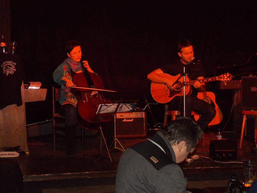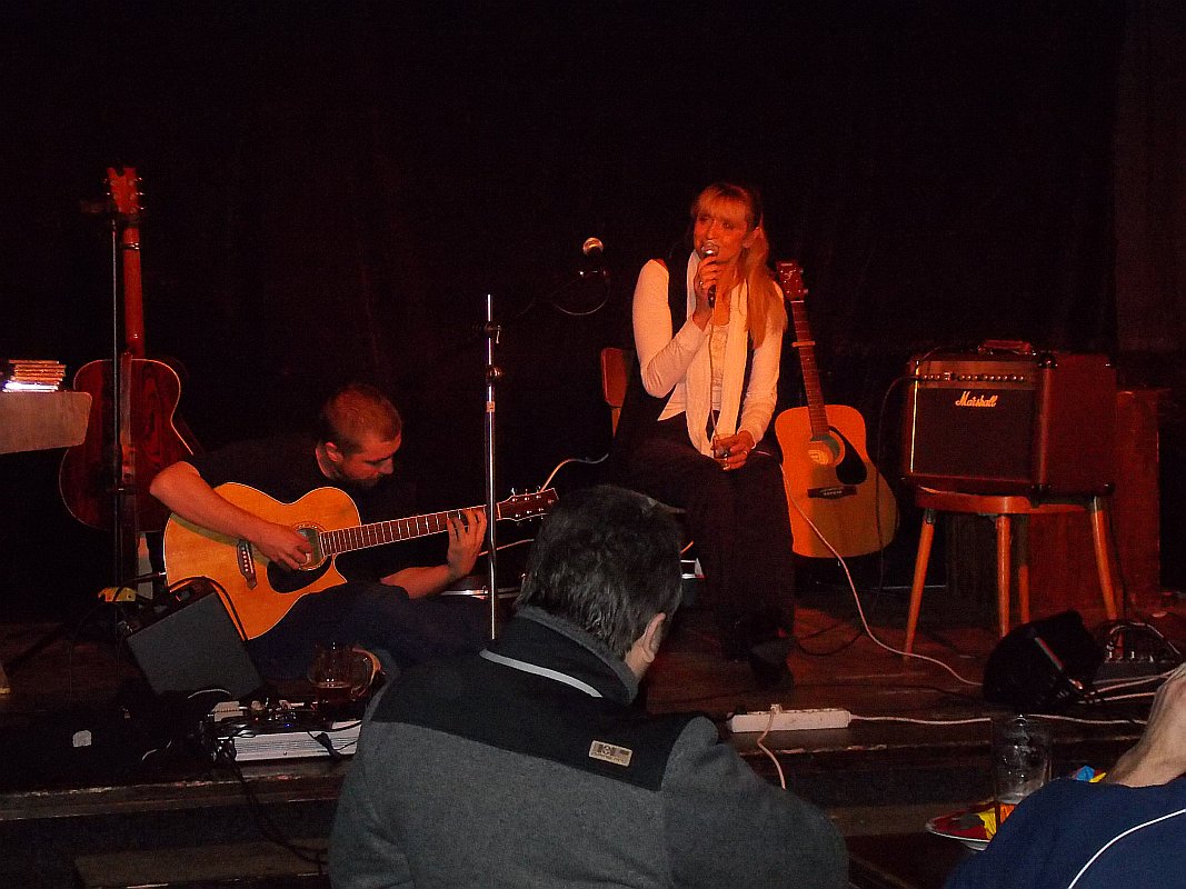 Ve středu 15. ledna v AC klubu v Hradci Králové se sešli písničkáři. Byli to první Písničkáři na niti, přestože písničkářské setkání na tomto místě bylo již dvacáté osmé (Důvod vysvětluje můj článek z přechozích dnů.). Pozvání přijala Stanislava Koucká Nodlová, Petr Brousil, Karel Malcovský, Jan Resl & Dita Holá. Večer odstartoval Karel Malcovský, který se zapsal do historie hradeckých písničkářských setkání zejména tím, že přijel z nejvzdálenějšího místa, a to z krušnohorského Jirkova. Jeho písně pohladily po duši. Jako druhý vystoupil temperamentní Petr Brousil, kterého můžete znát ze skupiny Bejlí. Jeho blok byl živelnější než Karlův a tím jen doložil, že každý písničkář je jedinečný.Vystoupení jednotlivců plynule přešlo v dua při bloku Stáni Koucké Nodlové, která zahrála několik vlastních písní. Poté pozvala na scénu písničkáře Davida Alfíka Dewettera a v závěru vystoupili spolu. Zvlášť působivá byla píseň Barové intermezzo. Stanislava Koucká Nodlová a David Alfík Dewetter jsou organizátoři spřátelené akce Písničkářů na niti, a to Zašitých písničkářů, které pravidelně pořádají zejména v klubu Kocour v Praze. Večer zakončil blok písničkáře Jana Resla za doprovodu Dity Holé, která jeho kytarové umění doplnila hrou na violoncello. Jan Resl zahrál své písně nejen v češtině, ale i v angličtině. V jeho skladbách byly cítit i jiné vlivy, než jen folkové. Mnozí písničkáři, kteří tento večer vystoupili, pravidelně hrají i na Zašitých písničkářích, a proto lednové královéhradecké setkání bylo s nimi velmi úzce spjato. Během večera si písničkáři vybrali korálek, na nějž bylo přidáno jejich jméno, a navlékli ho k již navlečeným korálkům. Konečné číslo je tedy prozatím 78 korálků - písničkářů. Další snad přibudou příště… Stane se tak 19. února. Přijďte se podívat! Sdílet na... Kam dál? » Písničkáři na niti v Hradci Králové v roce 2014 (Jana Štěpánková)