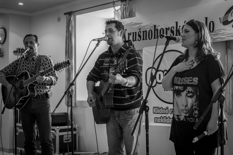 Už koně mě vítaj a oči maj hnědý a na pozdrav z ruky by chtěli mi žrát... Zrovna tahle písnička 11. dubna 2015 v Kalku nezazněla, na tu jsem si jenom při příjezdu vzpomněl. Ale jinak tam zaznělo muziky tolik, že vraty Klubu U Drexlerů jako kaše z pohádkového hrníčku koňskou ohradu pod ním důkladně zaplavovala. A nebyla první! V týdnu před Krušnohorským oblastním kolem Porty ji důkladně smáčela voda dešťů a sněhu, jehož hojné zbytky jsme v lesích a lukách při silnici cestou od Jirkova nahoru viděli. Proto byla tato louka, na níž oblastní kolo probíhalo loni, podmočená natolik, že se na ní hrát nedalo a koně - první živáčkové, které jsme v Kalku viděli, se nemuseli kvůli Portě stěhovat do jiné ohrady. Její výběrový koncert probíhal letos v sále klubu manželů Drexlerových.