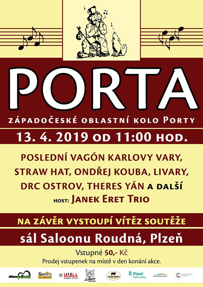 V sobotu 13. dubna od 11 do 16 hodin proběhlo Západočeské oblastní kolo Porty, jako obvykle pod patronací Jana Ereta, za moderátorské spolupráce Petra Vrobela a opět v Saloonu Na Roudné. Porota rozhodovala ve složení: Tomáš Hrubý (FOLKtime), Míša Leicht (Cop), Jiří Sláma (Avik), Zuzana Mimrová (Radio Folk) a moje maličkost (FOLKtime a Country radio).