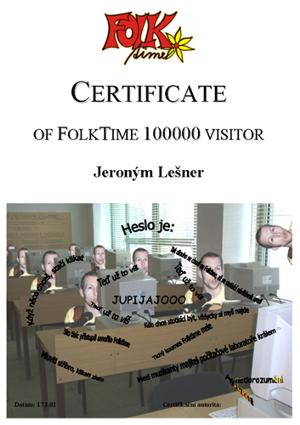 Neb toto individuum potkávám častěji, než je mi zdrávo, nevěnoval jsem mu pozornost po dobu delší než krátkou a započal v sále proces vítání se a seznamování s lidmi známými, resp. poznávanými. Během tohoto procesu mne opustila lítost, že jsem se dostavil pozdě, poněvadž tato skutečnost zcela vyloučila Šaolínův plán využít mne jako hostesku k předání certifikátu stotisícímu návštěvníkovi FOLKtimu. Tímto děkuji osudu a opět předávám slovo autorovi této reportáže.