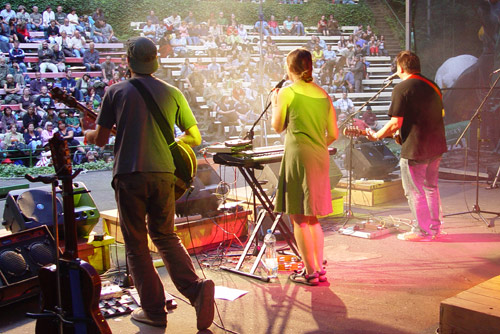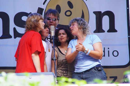 Páteční dvoření se jako první nevydržel Pavel Helan, tentokrát coby osamělý písničkář. Nevděčnou roli „obecného rozpalovače“ a rozesmívače po roce bez hudby „šíleně smutné Muziky“ zvládl poměrně se ctí, ačkoliv někdy možná sám očekával více pomoci od ještě strnulých dvořanů. To Epy de mye, v tom nejlepším slova smyslu „předčasně zestárlá nákaza“, se nijak nerozpakovala a svůj virus, jímž festival zamořila již v minulých ročnících, bez zábran rozkýchala po všech potenciálních hostitelích (vlastně v tomto případě hostech… no to je fuk), kteří snad ještě příjemná muka jejich infekce neabsolvovali. Míša Leicht se tentokrát neobklopil svým tradičním příčeskem, ale méně tradiční sestavou, splétající a odesílající melodie jeho sólové dráhy k imaginárnímu balkónu osmnáctileté oslavenkyně. Jelikož jsem bohužel člověk postrádající originalitu ve vyjadřování, musím docela obyčejně říci (a navíc se pravděpodobně opakovat), že právě tato Míšova podoba je mi o mnoho bližší, a to kupodivu přesto, že nástrojové složení obvykle probere z letargie zákeřného trpaslíka, škodolibě botkou ryjícího v nervech mého ucha. (Dovolte na tomto místě osobní poznámku k „pomlouvanému“ – ty BRDY platí!) Málokterá dívčina nepodlehne vhodně servírované nesmělosti. A právě té mají na rozdávání Honza Řepka s Petrem Ovsenákem, tedy duo Nestíháme. Nesmělost totiž není ničím jiným, než mnohem rafinovanější formou vlezlosti, od níž se krom noblesy v podání liší snad jen mnohem drtivějším dojmem a stálejší vzpomínkou. Ne že by snad v hrádeckém amfiteátru nepanovala ta správná folktrempkántry kamarádská atmosféra. Ovšem ta pravá Pohoda s velkým P měla dorazit ze Slovenska. Bohužel… snad tréma před půvaby Muziky, snad tradiční aktivity českých silničářů, či snad dokonce chyba soudruhů z Číny při výrobě GPS navigace způsobily, že tato se kdesi po cestě vytratila a letos nevystoupila. A tak se muselo trochu předčasně vyrojit na pódiu osazenstvo, které můžeme pro naše potřeby vymezit coby příbuzenstvo dospělé slečny. Tedy ty notoricky známé vesmírné svítiče, známé z podvečerních vystoupení v hlavních časech. Jinými slovy (a krom následujícího odstavce jedinými potřebnými) – stálice. Prvním z gratulantů byl pochopitelně „taťka“ Samson se svou partou, následovaný pro tentokrát osamělým strýčkem Wabim Daňkem a páteční večer uzavírajícím dědečkem Honzou Nedvědem s kapelou, na kterého už je ale i ta Muzika stará (pokleslý humor, to je moje).