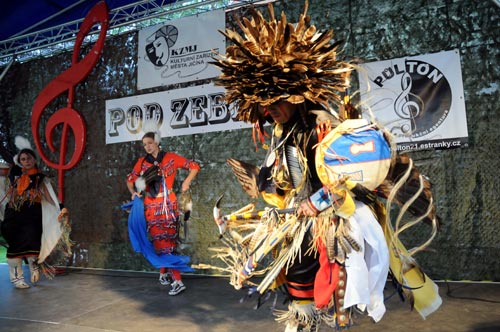 | Páteční country bál začal indiánskými tanci v provedení části kmene Pšito Oyate (Korálkoví lidé). Bílí indiáni přijeli z Plzně a patřilo jim i sobotní zahájení festivalové přehlídky. Byla to poutavá podívaná a mrzelo-li mne na ní něco, pak to, že indiánská lidová hudba ji doprovázela ze záznamu a že výhledu na tanečníky částečně bránila řada odposlechů na forbíně scény. |