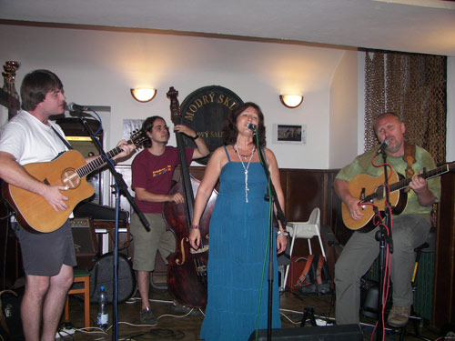 Sobotního „Kocoura“ zahájilo pražské Hořký kafe (hezké spojení koncovek, co?) s hostující Hanou Kopřivovou, tedy stejně jako loni. Svébytné a muzikantsky náramné projevy Petra Babce a Jana Rejhona řadím do šuplíku „velmi oblíbené“ a nemám důvod zařazení po jejich koncertu na náměstí měnit ani v nejmenším. Z příčin večerního stravování jsem budějovickou kapelu Alreens a jejich keltský repertoár jen slyšel. Tak, doufám, jindy. Cimbal classic jsem již delší dobu neviděl. Několik vteřin jsem přemýšlel, kdo je za cimbálem, ale zjistil jsem, že je to ostříhaný Dalibor Štrunc. Bohužel jsme slyšeli i smutnou zprávu, že již není mezi námi jejich kokršpaněl Balík, jemuž je věnována píseň Člověčina, která samozřejmě na jeho počest zazněla. Jinak zněly nové i ty starší a jako vždy mi běhal mráz po zádech při písni Vrávorám. Na budapešťskou kapelu Klezmer R´s jsem se docela těšil. V Budapešti žije dodnes, přes vyvraždění mnoha osob během vlády Šípových křížů, početná židovská komunita a tak jsem očekával ty pravé kořeny stylu klezmer. Koncert dobrou angličtinou komentovala klarinetistka Orzsi Szilágyi, ale vše znělo až příliš připraveně a vypočítavě na publikum, vnímající spíše povrch, než podstatu. Asi to nebyl v pravém smyslu klezmer, tak brilantně loni podaný Létajícím rabínem. Zněla i populární Kaťuša, nutící ke zpěvu všechny, kteří se ji učili čtyřicet let v rámci povinné ruštiny. Přiznám se otevřeně, že jsem koncert tak v polovině opustil. Navíc bych jako dramaturg dal Cimbal classic na konec a ne na začátek, protože není nic hezčího, než odcházet do letní noci s jeho hudbou. Dvojici z Bratislavy s názvem Longital, což je prešpurský název pro bratislavskou část Dlhé diely, jsem v Telči viděl několikrát, a tak jsem se jim v duchu omluvil a na koncert nešel.