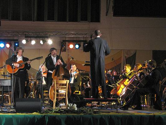 Začnu z jiného konce. Nápad propojit jihočeský folk s vážnou hudbou se zrodil před dvěma lety v Českých Budějovicích. Nezmaři nejdřív sháněli smyčcový kvartet na dokreslení jedné z písní a jihočeská filharmonie, vedená tenkrát šéfdirigentem Stanislavem Vavřínkem, nakonec nabídla spolupráci mnohem širší. Mladý talentovaný skladatel Lukáš Sommer se ve spolupráci se svou manželkou ujal nelehkého úkolu ušít známým nezmařím hitům slušivý symfonický kabátek. V roce 2009 toto nezvyklé spojení několikrát vyprodalo koncertní sály. Nejen pro ty, kdo se na koncert nedostali, vyšla i nahrávka na CD. Pan dirigent se poté přesunul do Zlína a vyvstal nápad zopakovat projekt i se zlínskou Filharmonií Bohuslava Martinů. Samozřejmě pro velká tělesa typu filharmonie není možné putování po celé republice, jak to známe u folkových kapel. Naplánován tedy koncert ve Zlíně - a bleskurychle vyprodán, bylo nutno dodat ještě další. A také jeden v Hluku, rodišti pana šéfdirigenta Vavřínka. Sám název na plakátu "Folksymphony" vzbuzoval zvědavost a očekávání. Nezmaři ve večerních róbách místo běžných džín a triček už zjevem naznačili, že půjde o mimořádný zážitek.