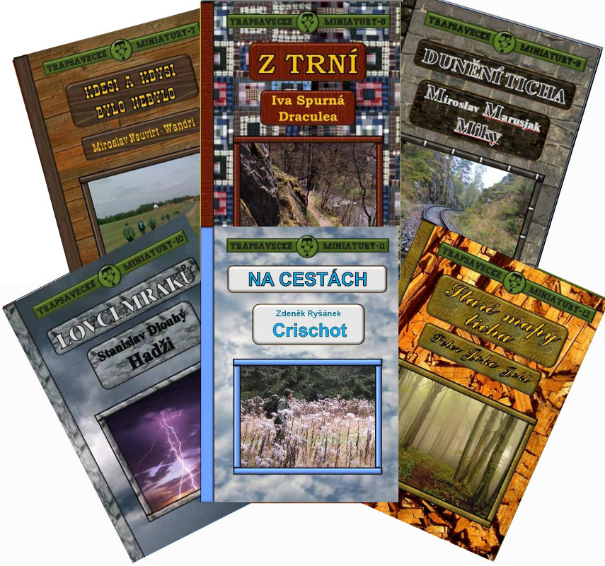 Už rok pod hlavičkou Trapsavce vycházejí Trapsavecké Miniatury. Každé číslo je věnováno jednomu autorovi současné trapsavecké scény. Edice, jejímž hlavním úkolem je mapování současných ale i minulých autorů bude samozřejmě pokračovat i v následujícím roce a doufejme, že nejenom v něm. Neskromným cílem je to, aby platilo, že kdo nevyšel v Trapsaveckých Miniaturách, jako by nikdy netrapsal. Do konce roku 2012 vyšlo: 1. Martin Šlápota – Šlápi - KDE MĚSÍC VÍTĚZÍ 2. Petr Soldát – Harmonika - S PŘÍCHUTÍ KOUŘE A RUMU 3. Vladimír Javůrek – Velkej drak – POSLÁNÍ ZA ÚPLŇKU 4. Magdalena Karelová – Waki – KUDY JINUDY 5. Pavla Slepičková – Pavlís – POSTE RESTANTE TRAMPE 6. Jan Eret – Janek – NERUŠÍM? 7. Miroslav Neuvirt – Wandri – KDESI A KDYSI BYLO NEBYLO 8. Iva Spurná – Draculea – Z TRNÍ 9. Miroslav Marusjak – Miky – DUNĚNÍ TICHA 10. Stanislav Dlouhý – Hadži – LOVCI MRAKŮ 11. Zdeněk Ryšánek – Crischot – NA CESTÁCH 12. Peter Jokl – Joko – STARÉ MAPY TICHA V roce 2013 se už přidaly další dvě sbírky, 13. Peter Benča – Pedro – PRÍHODY Z POHODY A ODINAKIAĽ 14. Josef Polívka – PŘÍBĚHY TULÁKA Další tituly jsou v přípravě, v plánované frekvenci co měsíc, to sbírka. Tak by to mělo jít července 2013, kdy vyjde č.20. Pak se edice na nějakou dobu zdánlivě odmlčí. Bude se totiž usilovně pracovat na překvapení, které je chystáno u příležitosti 40.ročníku Trapsavce v roce 2014. Nebudu prozrazovat, vše se dozvíte v květnu příštího roku. Od června 2014 se pak vrátíme ke standardnímu vydávání sbírek. Jednotlivé tituly je možné si objednat na trapsaveckém mailu Tato emailová adresa je chráněna před spamboty, abyste ji viděli, povolte JavaScript nebo na Tato emailová adresa je chráněna před spamboty, abyste ji viděli, povolte JavaScript , s předmětem Miniatury. Cenu se pokusím udržet na současných 20Kč za kus, v případě doručení poštou je potřeba připočítat poštovné a balné. Vydání novinek je oznamováno na www.trapsavec.cz. Uvítám i tipy na zajímavé autory, nabídky spolupráce na Miniaturách i pomoc při sehnání a zajištění levného tisku. Sdílet na...